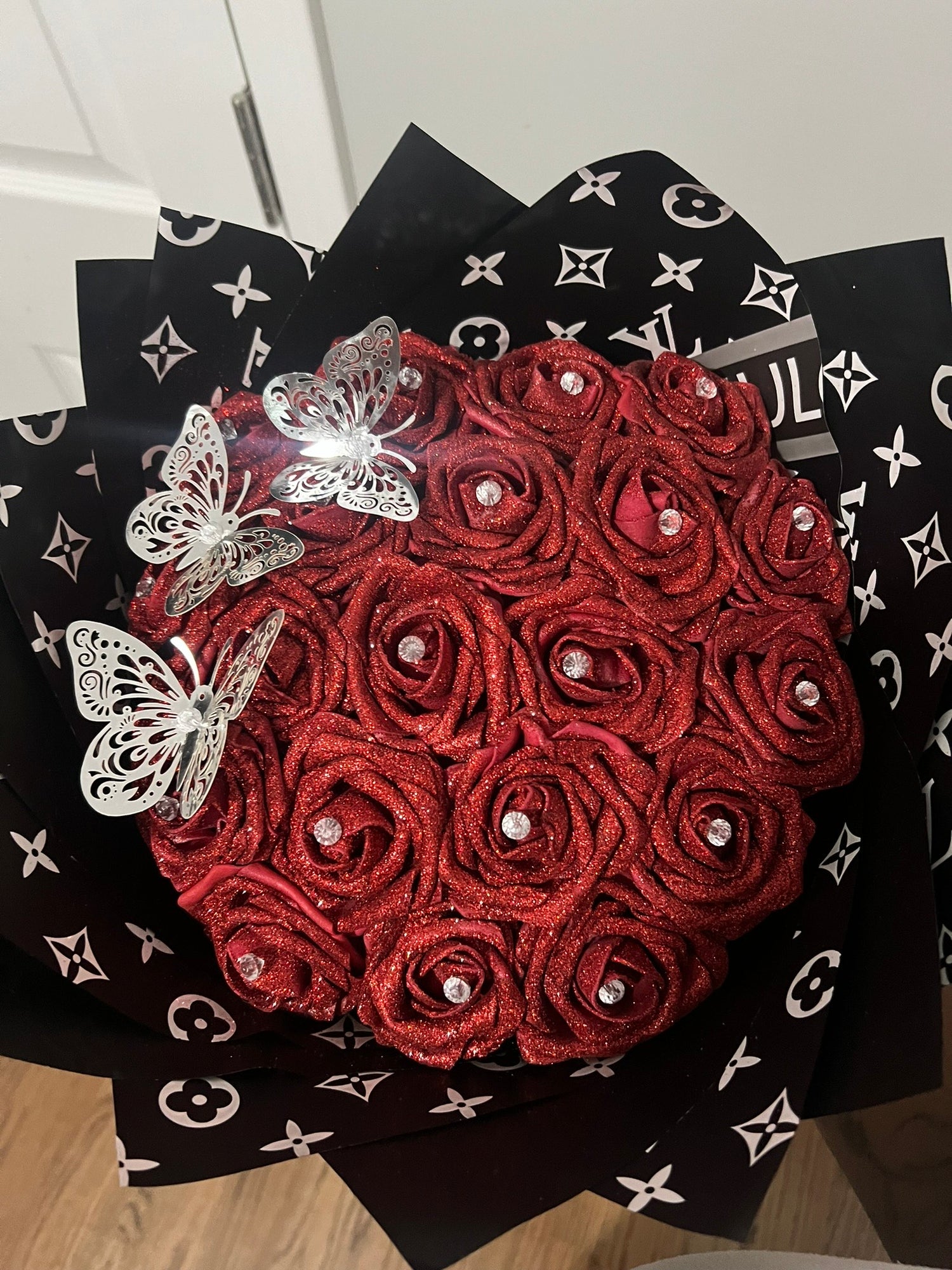 Bouquet made out of Artificial floral roses, multiple colors available.